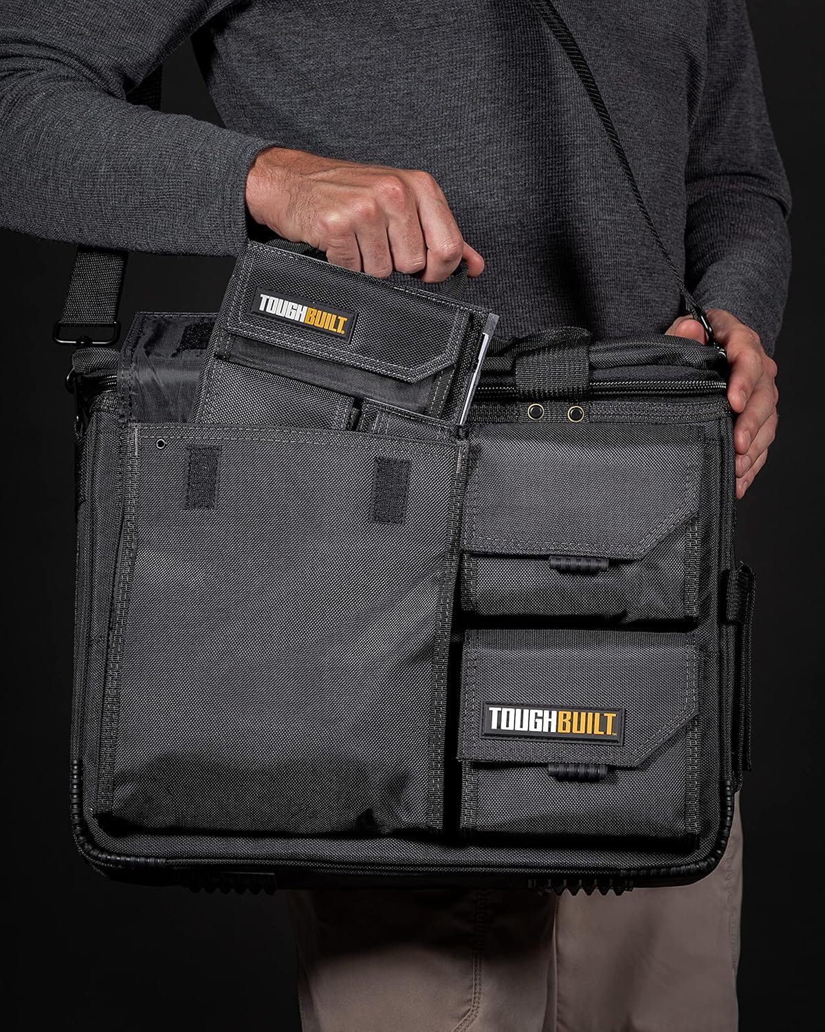 Organizer na budowę ToughBuilt TB-56-L-C – Notatnik, kieszenie na akcesoria, uchwyt, kieszeń na telefon | Porządek w terenie i na budowie