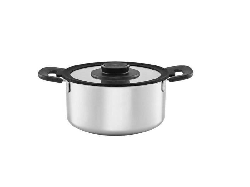 Szklana, płaska pokrywa z silikonowym brzegiem posiada dwie funkcje odcedzania i odlewania.