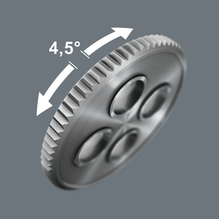 Drobnozębna z 80 zębami i niewielkim kątem powrotu zapadki wynoszącym zaledwie 4,5°