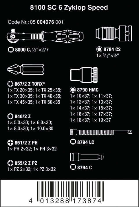8100 SC 6 Grzechotka Zyklop Speed 1/2" w zestawie metrycznym, 28 część