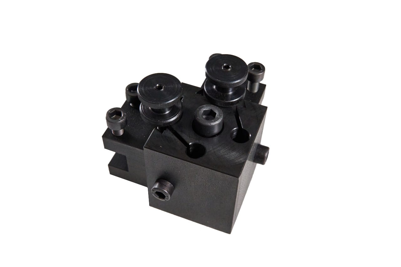 Zawiera dwa uchwyty. Umożliwia szybką wymianę narzędzia i proste ustawienie wysokości. Do noży tokarskich 10 × 10 mm.