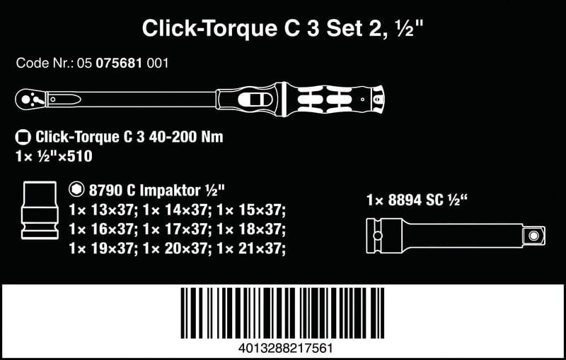 KLUCZ DYNAMOMETRYCZNY CLICK-TORQUE E C 3 SET 2, 40-200NM WERA W05075681001