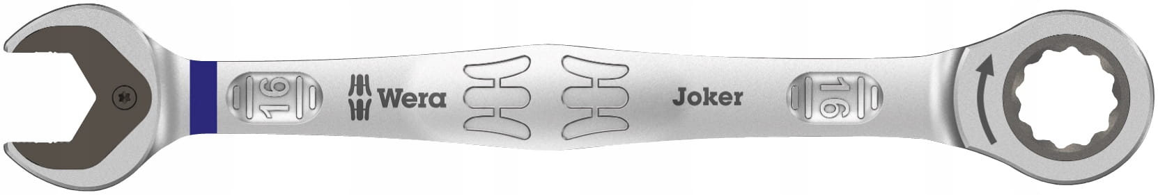 wszystko, co powinien zapewnić klucz. I jeszcze więcej. Szybciej, lepiej, bezpieczniej. Tak właśnie działa Joker. Nowa generacja kluczy płasko-oczkowych z grzechotką. Do śrub i nakrętek z łbem sześciokątnym. Funkcja przytrzymywania z metalową płytką zmniejszającą ryzyko zgubienia śruby lub nakrętki. Bardzo twarde ząbki wymiennej płytki zabezpieczają śruby i nakrętki oraz zmniejszają ryzyko ześlizgiwania się klucza. Wbudowany ogranicznik zapobiega ześlizgiwaniu się klucza z łba śruby i umożliwia przenoszenie wysokich momentów obrotowych. Podwójny profil sześciokątny zapewnia doskonałe połączenie kształtowe między kluczem a śrubą bądź nakrętką, zmniejszając tym samym ryzyko ześlizgiwania. Kąt pracy 30° eliminuje czasochłonne obracanie klucza. Niezwykle drobna podziałka z 80 zębami zapewnia maksymalną elastyczność nawet w wąskich przestrzeniach. Przenoszenie wysokich momentów obrotowych i podwyższona wytrzymałość na zginanie dzięki specjalnej geometrii.