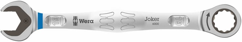 Wysokiej jakości metryczny klucz płasko-oczkowy z grzechotką: wszystko, co powinien zapewnić klucz. I jeszcze więcej. Szybciej, lepiej, bezpieczniej. Tak właśnie działa Joker. Nowa generacja kluczy płasko-oczkowych z grzechotką. Do śrub i nakrętek z łbem sześciokątnym. Funkcja przytrzymywania z metalową płytką zmniejszającą ryzyko zgubienia śruby lub nakrętki. Bardzo twarde ząbki wymiennej płytki zabezpieczają śruby i nakrętki oraz zmniejszają ryzyko ześlizgiwania się klucza. Wbudowany ogranicznik zapobiega ześlizgiwaniu się klucza z łba śruby i umożliwia przenoszenie wysokich momentów obrotowych. Podwójny profil sześciokątny zapewnia doskonałe połączenie kształtowe między kluczem a śrubą bądź nakrętką, zmniejszając tym samym ryzyko ześlizgiwania. Kąt pracy 30° eliminuje czasochłonne obracanie klucza. Niezwykle drobna podziałka z 80 zębami zapewnia maksymalną elastyczność nawet w wąskich przestrzeniach. Przenoszenie wysokich momentów obrotowych i podwyższona wytrzymałość na zginanie dzięki specjalnej geometri