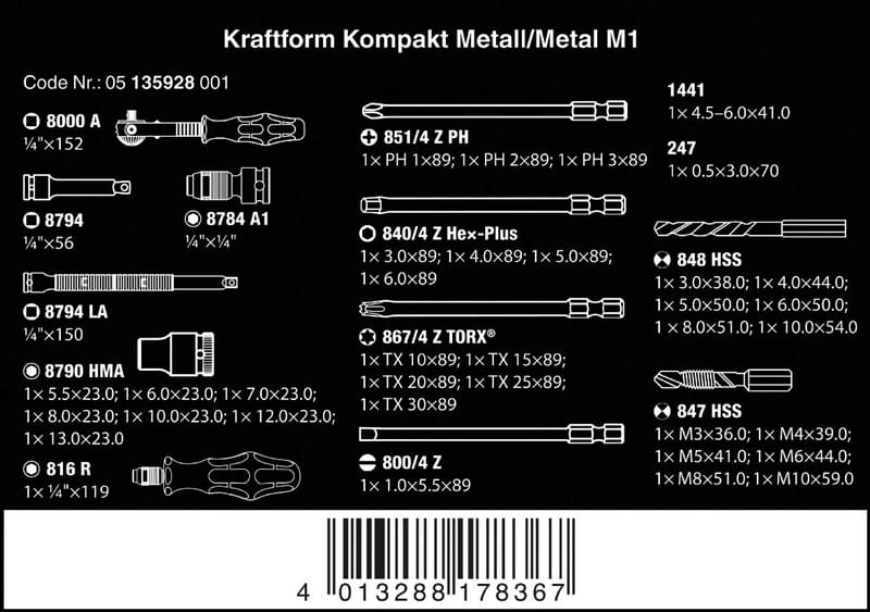 KRAFTFORM KOMPAKT M 1 DO METALU, 39 CZĘŚĆ WERA W05135928001