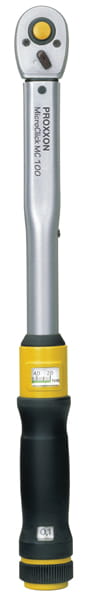 Najlepszy do motocykli. Profesjonalne klucze dynamometryczne PROXXON MicroClick, to narzędzia precyzyjne o wysokiej dokładności (tolerancja +/- 3% wg ISO 6789). Kalibrowane i kontrolowane indywidualnie. Mechanizm grzechotkowy z przełącznikiem obrotów prawo-lewo. Automatyczne zwalnianie przez wyraźnie słyszalny i wyczuwalny „klik” przy osiągnięciu wybranego momentu obrotowego.