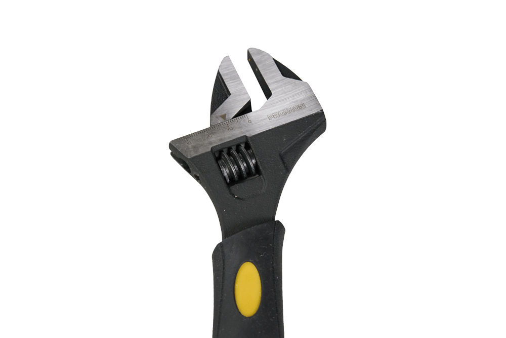 Wyjątkowo wydłużona wersja z przyjaznym dla skóry i ergonomicznym uchwytem wykonanym z odpornego na smary i kwasy termoplastycznego tworzywa (TPR) z otworem do zawieszania. Wąska głowica ze szlifowanymi szczękami. Precyzyjne prowadzenie ruchomego ramienia z łatwym ustawieniem za pomocą ślimaka narzędziowego. Czytelna skala milimetrowa ułatwia identyfikację rozmiaru klucza oraz pozwala na pomiar odkręcanej śruby.