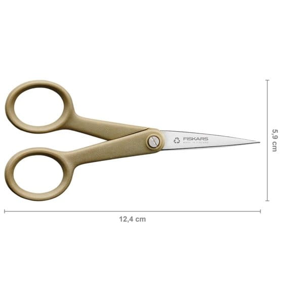Nożyczki do nitek Fiskars ReNew wykonane są z materiałów pochodzących z recyklingu (80%)