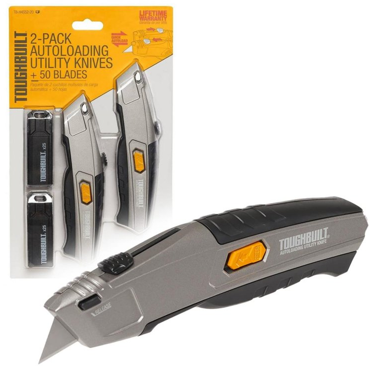 Nóż roboczy ToughBuilt TB-H4S52-20 – Zestaw 2 noży technicznych z automatyczną wymianą ostrzy + 50 ostrzy w komplecie