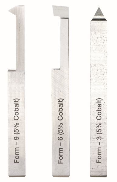1 nóż do gwintów zewnętrznych, 1 do gwintów wewnętrznych (obydwa 60° do gwintów metrycznych), 1 nóż do wytaczania. W drewnianej skrzynce z zasuwanym wieczkiem. 8 x 8 x 80 mm (do PD 230/E oraz PD 250/E)