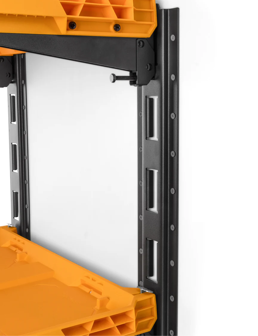 Półki narzędziowe ToughBuilt StackTech TB-B1S3-M-20 to funkcjonalne rozwiązanie dla warsztatu, przyczepy czy vana, gdzie liczy się porządek i ergonomia. Dzięki solidnym wspornikom stalowym i szynom E-Track o długości 50 cm, system gwarantuje stabilność nawet podczas transportu. Regulowana wysokość półek pozwala optymalnie wykorzystać przestrzeń, a udźwig do 22,5 kg na półkę sprawia, że system jest praktyczny i wytrzymały.