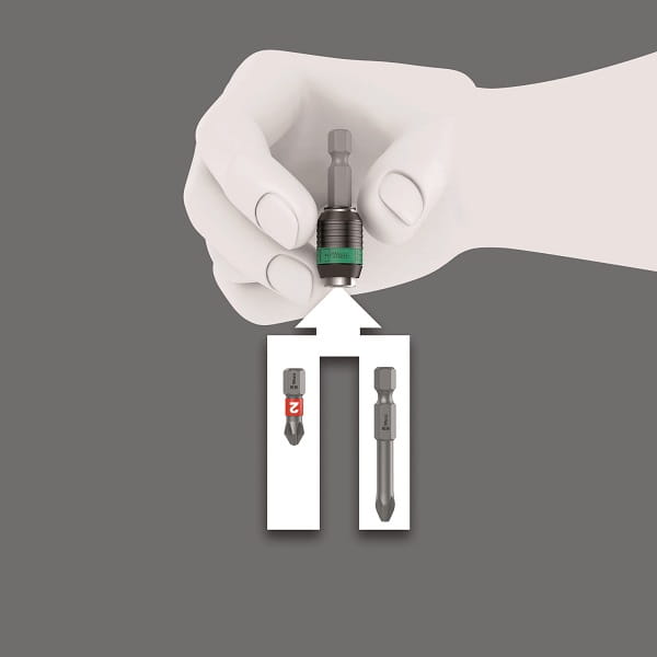 Uchwyt uniwersalny Rapidaptor do grotów sześciokątnych 1/4" wg DIN ISO 1173-C 6,3 oraz końcówek E 6,3 (ISO 1173). Możliwość