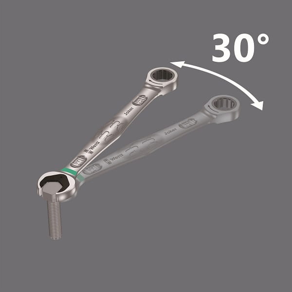 Tool Rebel wyposażona w 11 kluczy płasko-oczkowych z grzechotką Wera 6000 Joker.