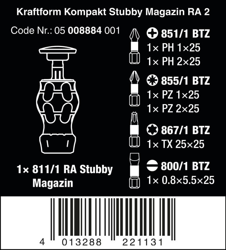 WKRĘTAK KRAFTFORM KOMPAKT STUBBY MAGAZIN RA 2, Z 6 BITAMI WERA W05008884001