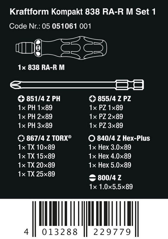WKRĘTAK KRAFTFORM KOMPAKT Z GRZECHOTKĄ 838 RA-R M SET 1,15CZ WERA W05051061001