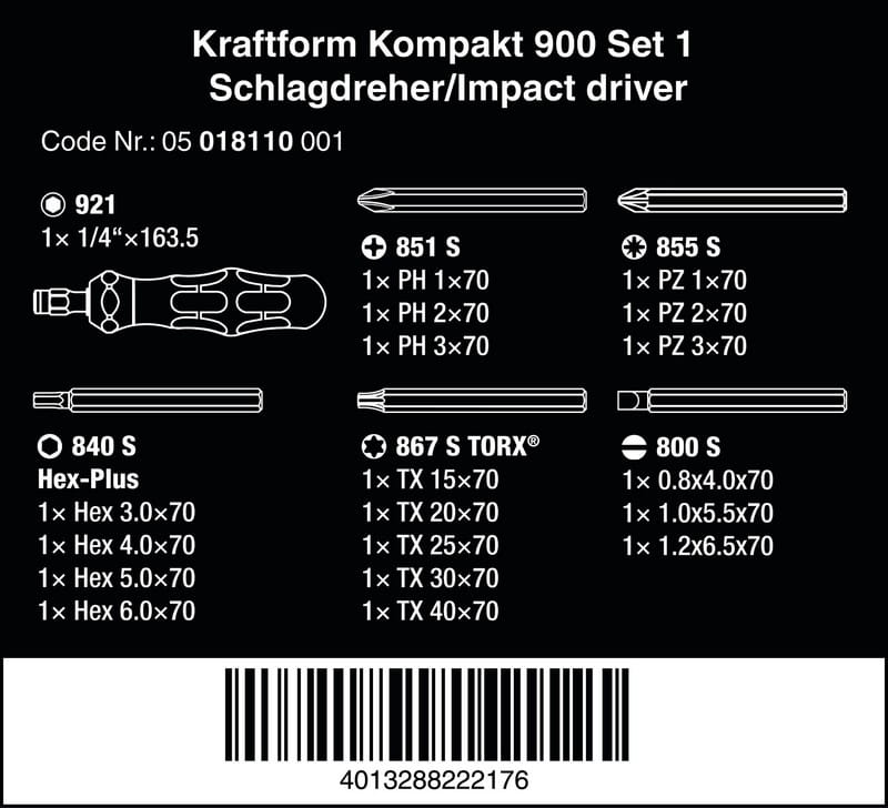 WKRĘTAK UDAROWY KRAFTFORM KOMPAKT 900 WERA W05018110001