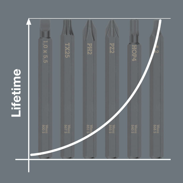 Specjalnie hartowane i wyjątkowo wytrzymałe bity z chwytem sześciokątnym 1/4"
