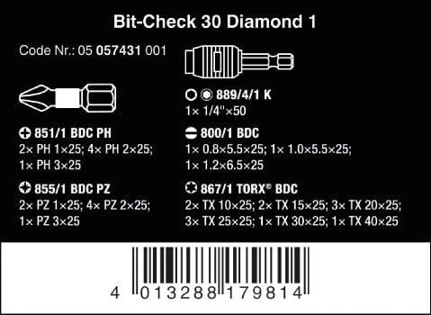 ZESTAW BITÓW BIT-CHECK 30 DIAMOND 1, 30 CZĘŚĆ WERA W05057431001