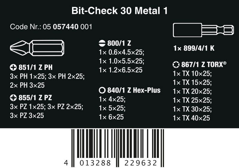 ZESTAW BITÓW BIT-CHECK 30 METAL 1 SB, 30 CZ. WERA W05057440001