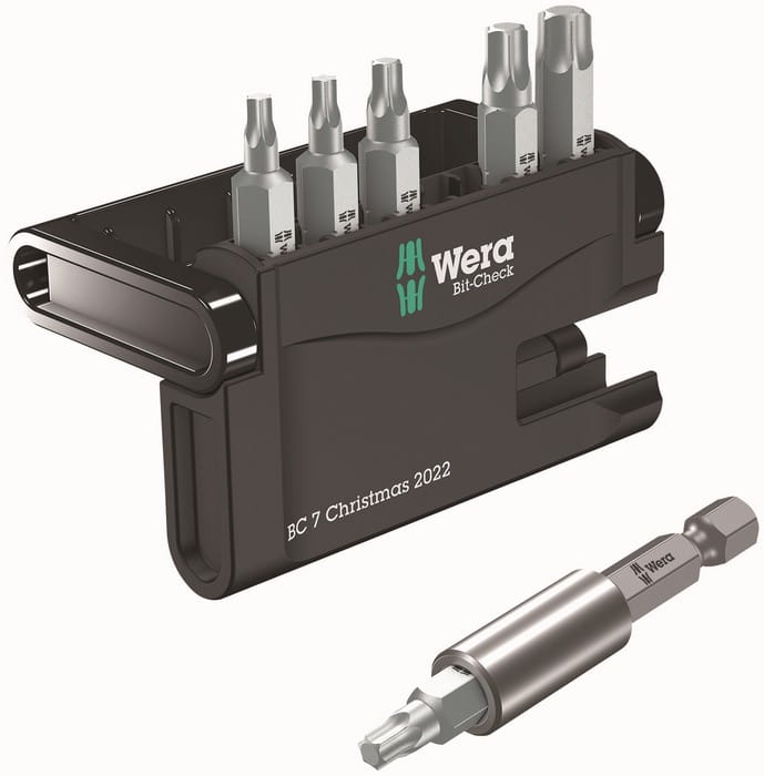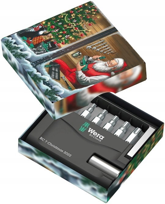 Wytrzymały zestaw Bit-Check firmy Wera w opakowaniu świątecznym.