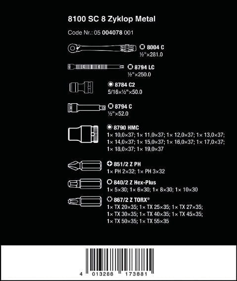 ZESTAW KLUCZY I BITÓW+GRZECHOTKA ZYKLOP METAL 1/2''28 CZĘŚCI WERA W05004078001