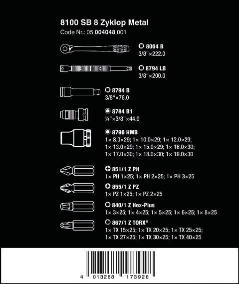 ZESTAW KLUCZY NASADOWYCH 3/8''ZYKLOP METAL,+GRZECHOTKA 29CZ. WERA W05004048001