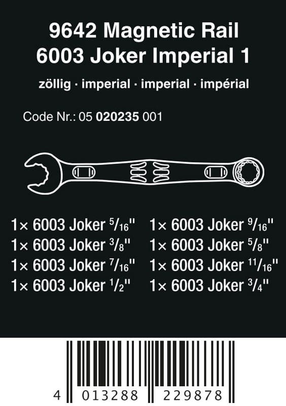 ZESTAW KLUCZY PŁAS.-OCZK. Z GRZECH. 6003 JOKER 1+LISTA MAGN. WERA W05020235001