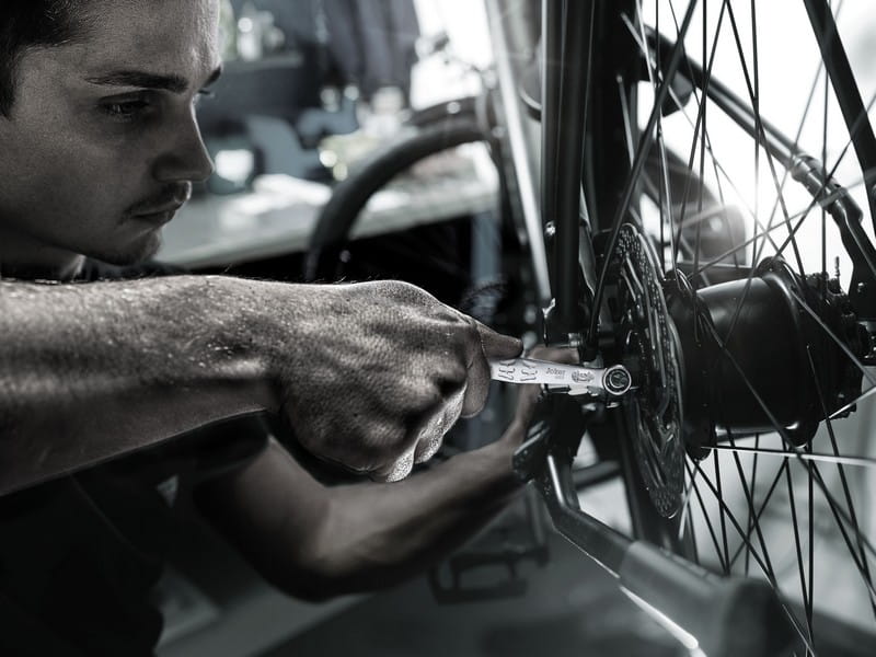 Nadaje się w szczególności do zastosowania w ograniczonych przestrzeniach podczas napraw rowerów