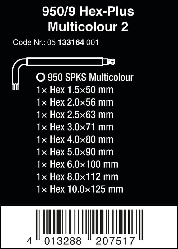 ZESTAW KLUCZY TRZPIENIOWYCH 950/9 HEX-PLUS MULTICOLOUR WERA W05133164001