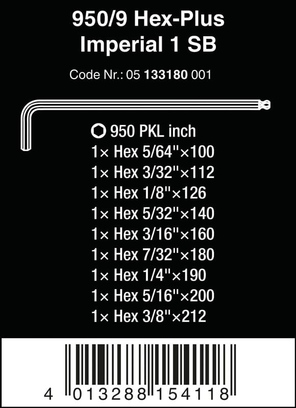 950 PKL Klucz trzpieniowy długi z kulką, BlackLaser, calowy, 5/64" x 100 mm