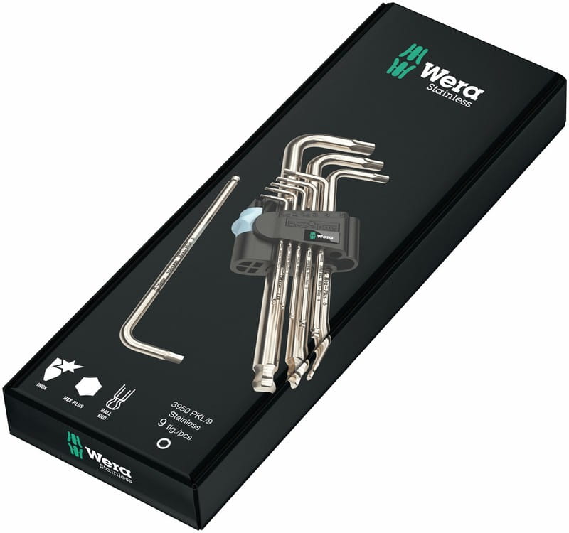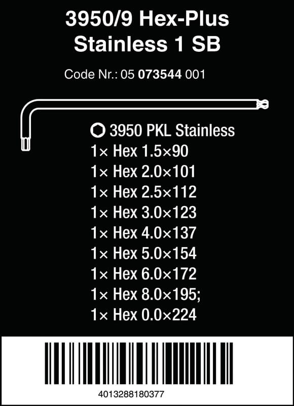 3950/9 Hex-Plus Stainless 1 SB Zestaw kluczy trzpieniowych ze stali nierdzewnej, metrycznych, w opakowaniu z zawieszką, 9 cz