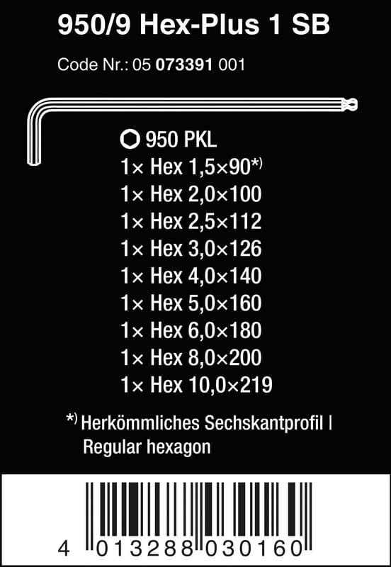 ZESTAW KLUCZY TRZPIENIOWYCH METRYCZNYCH Z KULKĄ HEX PLUS 9CZ WERA W05073391001