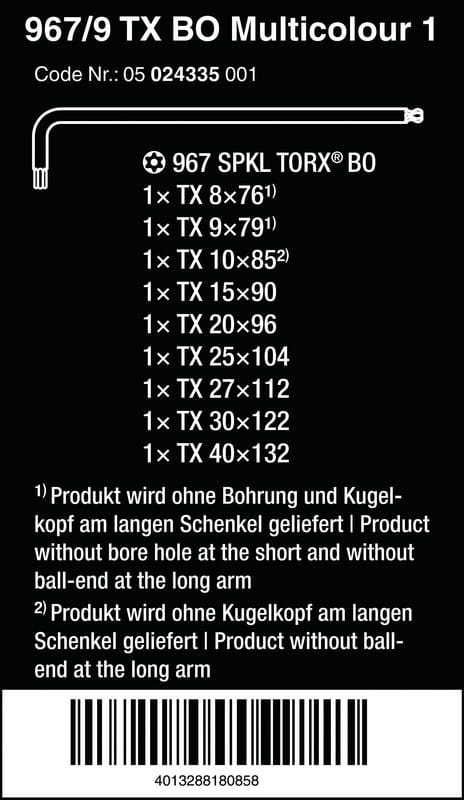 ZESTAW KLUCZY TRZPIENIOWYCH TORX MULTICOLOUR TX8-TX40 WERA W05024335001
