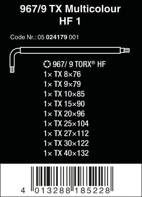 967/9 TX Multicolour HF 1 Zestaw kluczy trzpieniowych z funkcją przytrzymywania, 9 cz