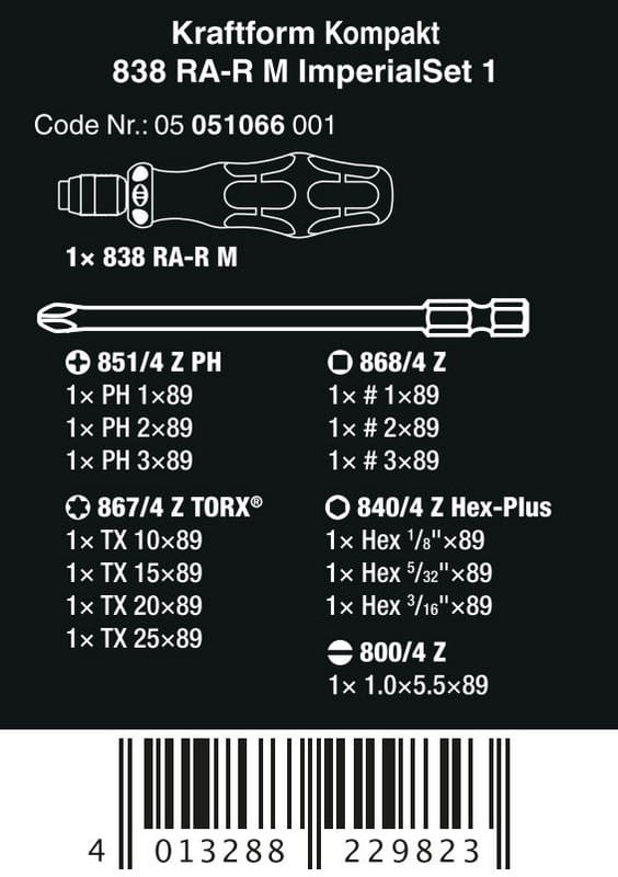 ZESTAW KRAFTFORM KOMPAKT 838 RA-R M IMPERIAL SET 1, 15 CZ. WERA W05051066001