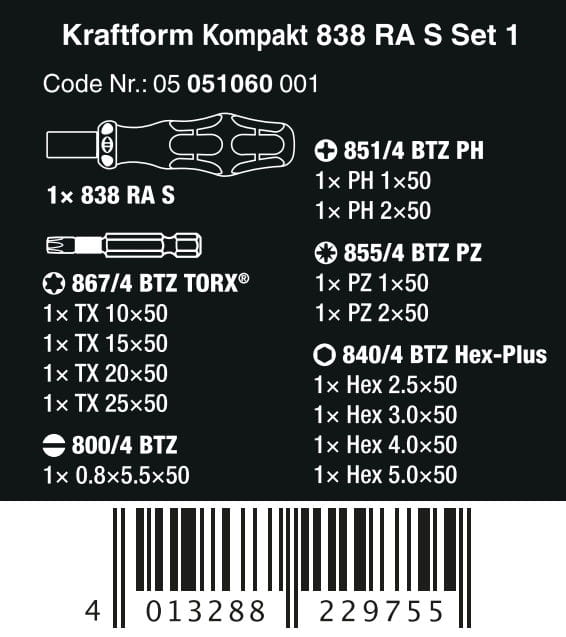 ZESTAW KRAFTFORM KOMPAKT 838 RA S SET 1, 14 CZ. WERA W05051060001