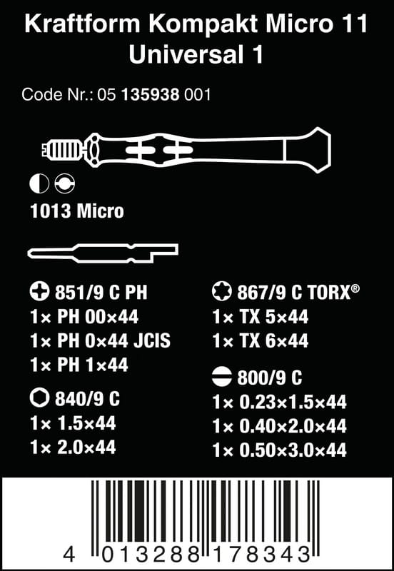ZESTAW KRAFTFORM KOMPAKT MICRO 11 UNIVERSAL 1 WERA W05135938001
