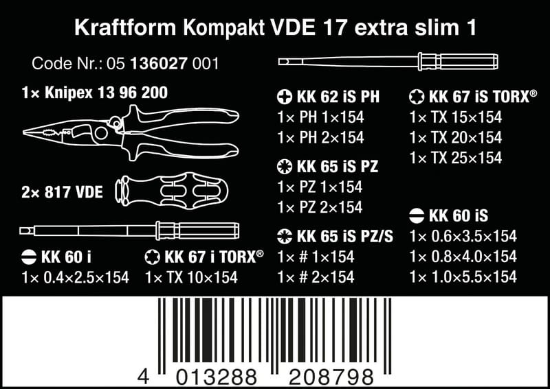 ZESTAW KRAFTFORM KOMPAKT VDE 17 EXTRA SLIM 1, 16 CZĘŚĆ WERA W05136027001