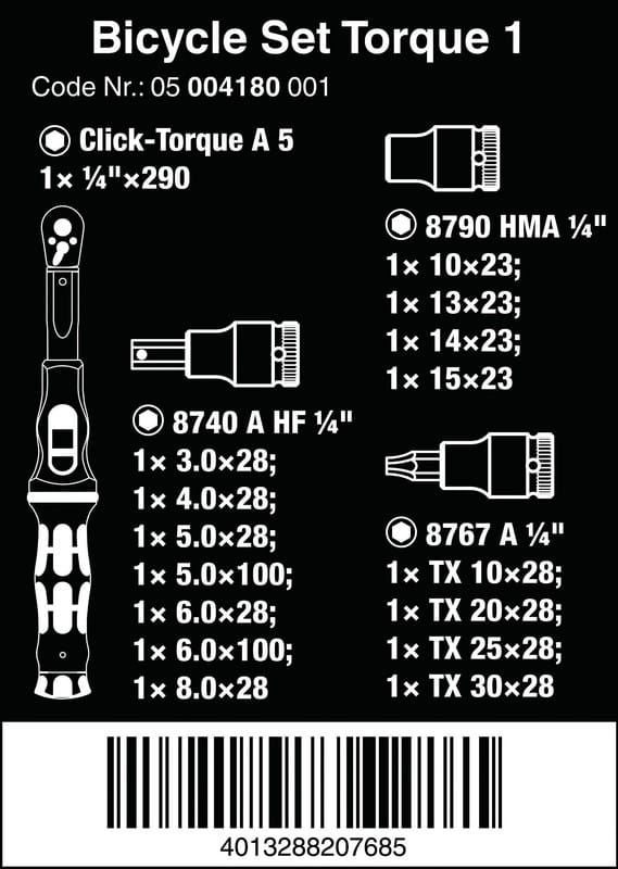 Bicycle Set Torque 1, 2,5-25 Nm, 16 część