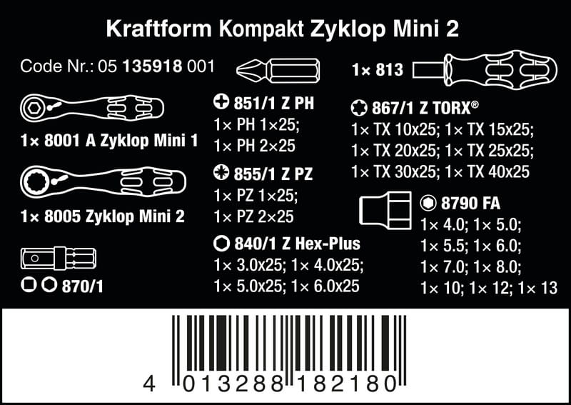 ZESTAW NARZĘDZI NASADOWYCH ZYLKOP MINI 2, 27 CZ. WERA W05135918001