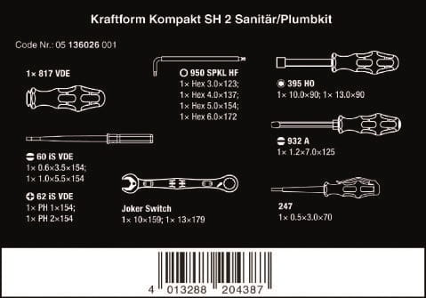 Kompaktowy zestaw 15 najważniejszych narzędzi wkrętakowych do instalacji sanitarno-grzewczych. 2 klucze Joker Switch,