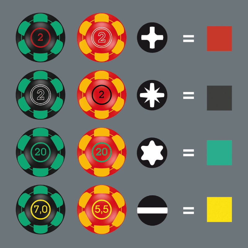 Z systemem wyszukiwania narzędzi Take it easy: oznaczenie kolorystyczne rozmiaru