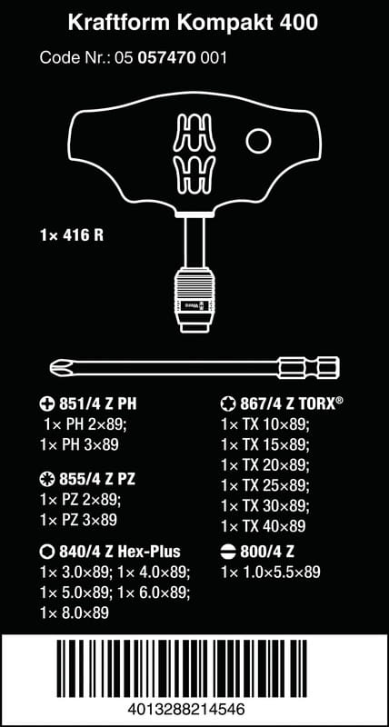 ZESTAW WKRĘTAKÓW KRAFTFORM KOMPAKT 400, 17CZ. WERA W05057470001