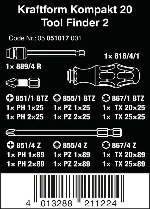 ZESTAW WKRĘTAKÓW KRAFTFORM KOMPAKT TOOL FINDER 2, 13CZ. WERA W05051017001