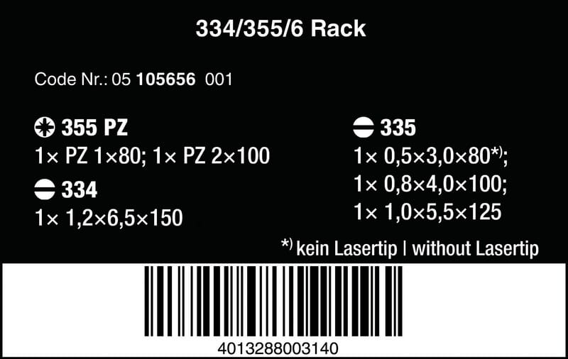 ZESTAW WKRĘTAKÓW KRAFTFORM LASERTIP + WIESZAK, 6CZ WERA W05105656001