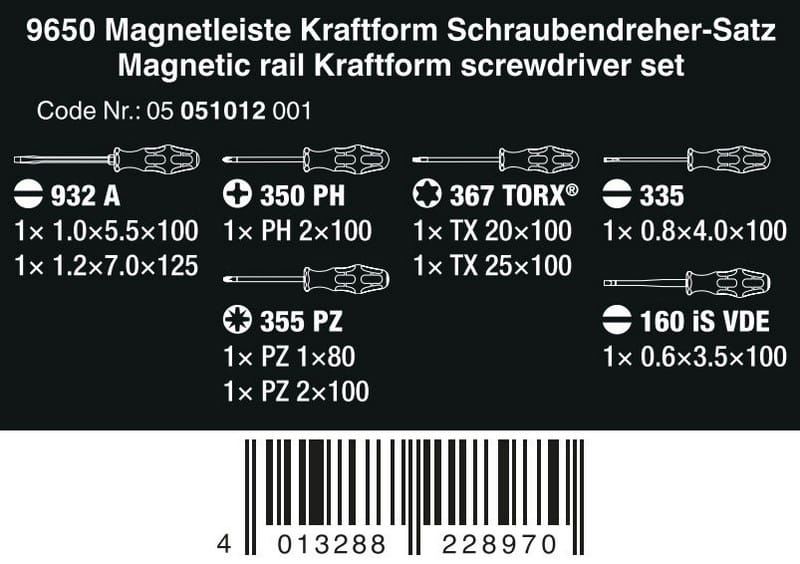ZESTAW WKRĘTAKÓW KRAFTFORM NA LISTWIE MAGNETYCZNEJ 9650 WERA W05051012001