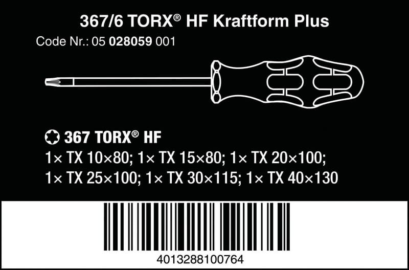 367/6 TORX® HF Zestaw wkrętaków Kraftform z funkcją przytrzymującą + wieszak, 6 cz