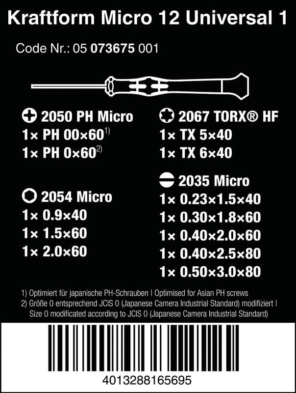 ZESTAW WKRĘTAKÓW PRECYZYJNYCH NASADOWYCH 12 SZTUK WERA W05073675001