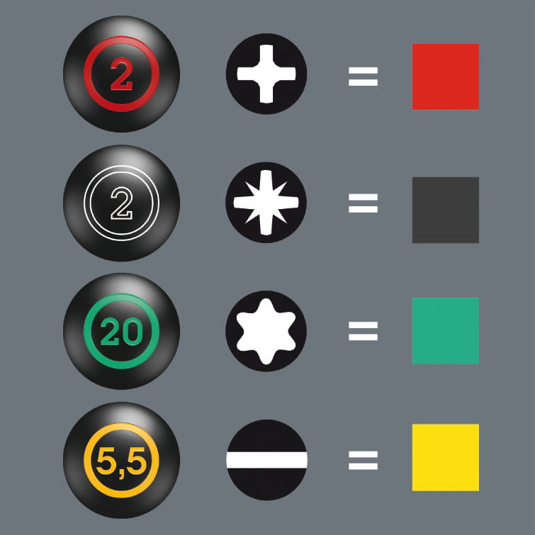 Z systemem wyszukiwania narzędzi Take it easy: oznaczenie kolorystyczne rozmiaru