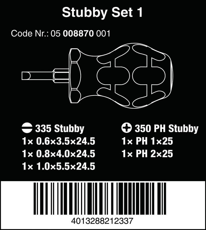 ZESTAW WKRĘTAKÓW STUBBY SET 1, 5SZT. WERA W05008870001